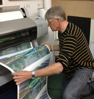 Giclee Pronounced "zhee-clay", derived from the French word meaning "spray", a phrase that accurately describes the process of using a large format, fine art digital 8-color printer to produce prints of superior quality. Each print is made to order with premium color-fast inks and is individually color corrected to be almost indistinguishable from the original art. We work from existing photographs, prints, or any other source that can be scanned or a digital image file emailed by the client. The finished Giclee is printed on ultra premium canvas, watercolor, fine art or luster photo paper, and at any size and shape to fit our client’s requirements. We can digitally enhance or correct the color as well as the composition to any piece as an additional service.